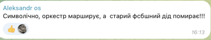 “Реанімаційному автомобілю довелося від’їхати через маршируючих військових. ФСБшника у рясі вивели за сцену, і захід продовжився, як нічого не бувало”, — пишуть у мережі.