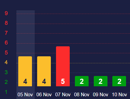 Як йдеться у ресурсі Meteoagent, який складає свій прогноз шляхом інформації з супутникових систем NOAA, TESIS та наукових міжнародних метеорологічних лабораторій, наразі, 5 листопада, нашу планету охопив 4-бальний геомагнітний шторм. Він триматиметься й у середу, 6 листопада. Але вже 7 листопада, у четвер, потужність магнітної бурі виросте до 5 балів, тобто вона буде сильною.