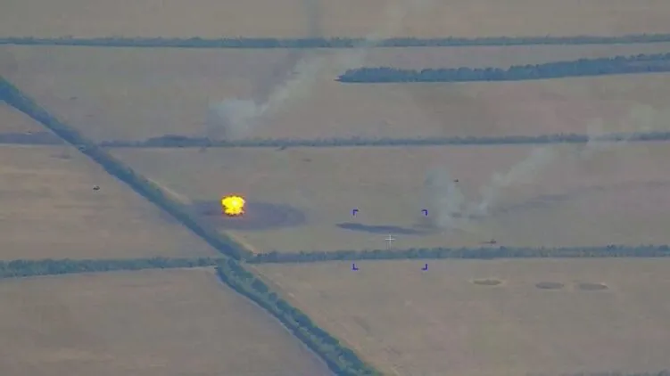 На відео помітно, як система ППО запускає ракети із землі, а потім нею йде приліт. Все це знімає розвідувальний безпілотник.