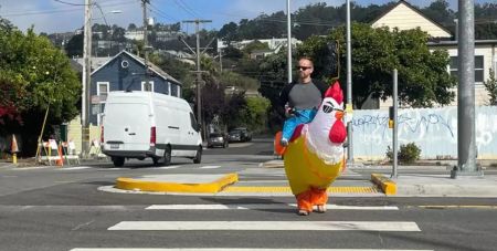 Лейтенант Джонатан Озол з Сан-Франциско (США) відмовився від кашкета та значка на користь надувного костюма півня, розфарбованого у всі кольори…