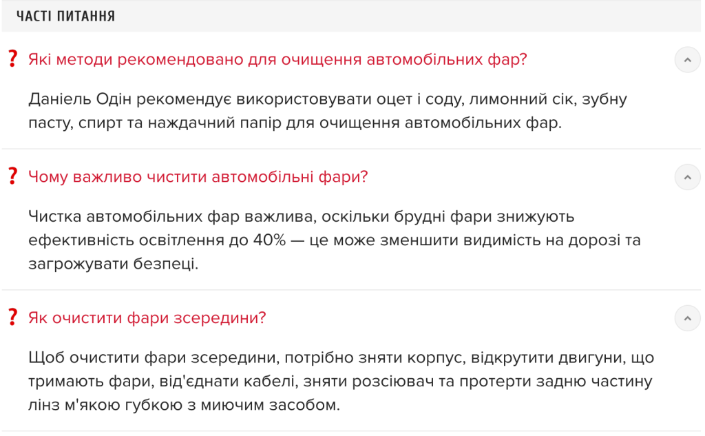Пластикова поверхня фар з часом тьмяніє від пилу, тож зменшує видимість на дорозі. Даніель зазначає, що брудні фари знижують ефективність освітлення до 40%, тому раз в сезон потрібно чистити фари задля безпеки.