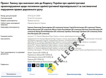 Проєкт закону зареєстровано 1 листопада, а у вівторок, 5 листопада, його уже направили на розгляд комітету. Нові положення стосуються кількох поширених порушень. Серед них — недотримання правил проїзду пішохідних переходів, ігнорування переваги пішоходів на нерегульованих переходах та проїзд на заборонний сигнал світлофора. Також зміни торкнуться порушень правил проїзду перехресть, обгону та зустрічного роз’їзду.