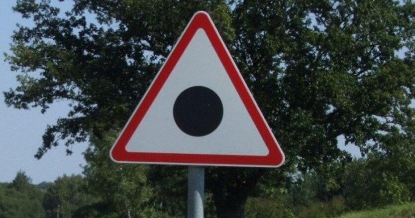 На дорогах України водії почали помічати незвичний дорожній знак, який викликає плутанину серед автомобілістів. Йдеться про білий трикутник із червоною рамкою та чорною крапкою всередині — символ, якого немає у старих навчальних матеріалах для здачі екзаменів.