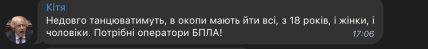 Були й ті, хто був невдоволений поведінкою чоловіка. Коментатор написав, що в окоп мають піти всі від 18 років.