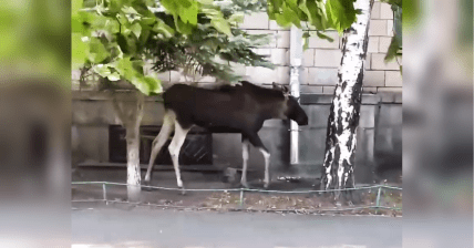 У соцмережах з’явилося відео, де видно, як лось бігає порожньою вулицею. Свідки розповіли, що викликали поліцію, але спіймати тварину одразу не вдалося.