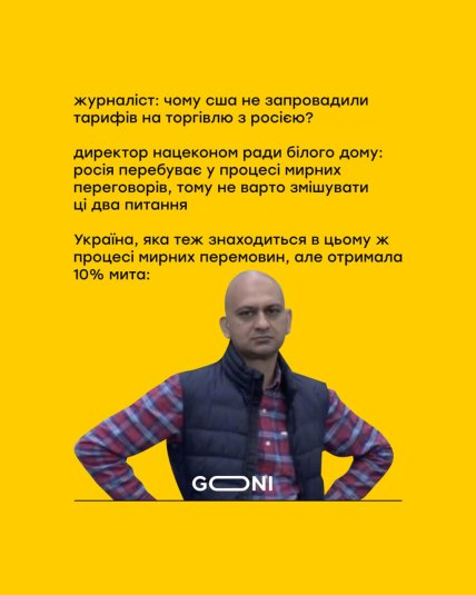 Окремою темою для жартів щодо тарифів Трампа стало те, що США не ввели їх для Росії, а от Україна отримала 10%, як і більшість держав.