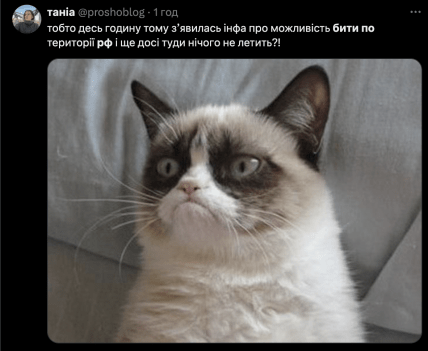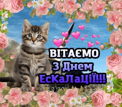 Люди створили фото, де зображений Байден і милий котик, а під ним напис: “З днем дозволу ракетних ударів по РФ” і “Вітаємо з днем екскалації”.