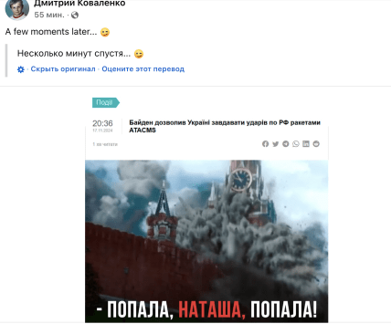 Надвечір 17 листопада західні ЗМІ повідомили, що адміністрація президента США Джо Байдена дозволить Україні використовувати надану США зброю для нанесення ударів углиб території Росії.