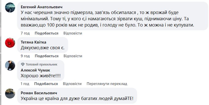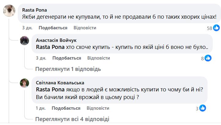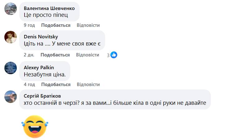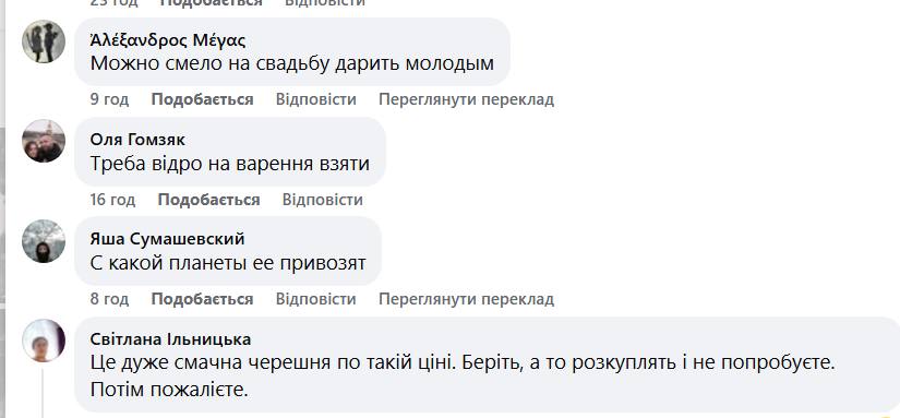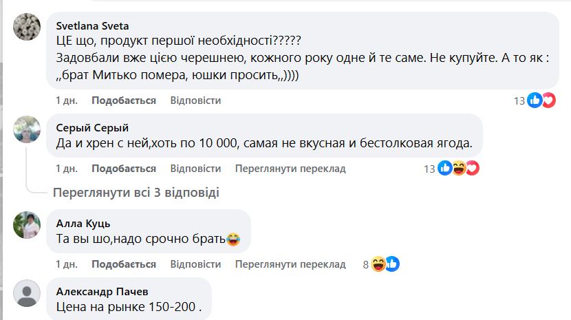 Користувачі не приховують свого здивування та іронізують щодо недоступності улюбленої ягоди. Серед коментарів є саркастичні: «З якої планети її привозять?», «Я краще десь вкраду» та «Треба брати». Деякі відверто заявляють: «Це просто піп*ц», а інші з гумором запитують: «Хто останній в черзі? я за вами… і більше кіла в одні руки не давайте».