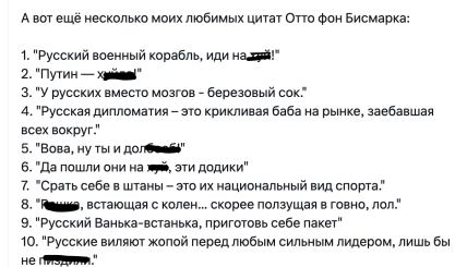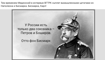 Однак більшість жартів стосувались створення нових цитат від Бісмарка, і одна з них доволі влучна “Делегація росіян — це бутафорія”. Проте так казав не Бісмарк, а президент України Володимир Зеленський під час свого візиту до Туреччини.