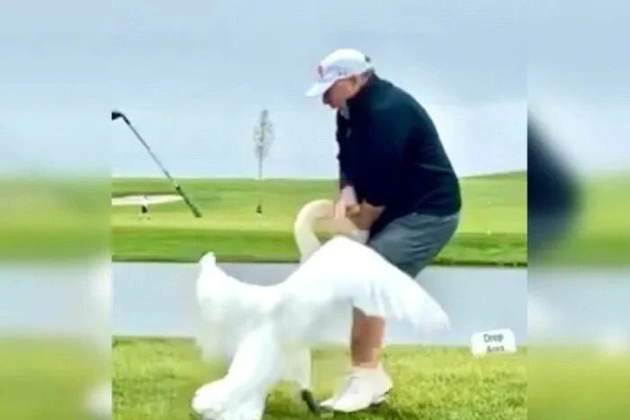 Американський президент Дональд Трамп опублікував фотографію свого спецпосланця Стіва Віткоффа, якого під час гри в гольф вкусив лебідь. Кумедний знімок президент розмістив у своїй соціальній мережі Truth Social.