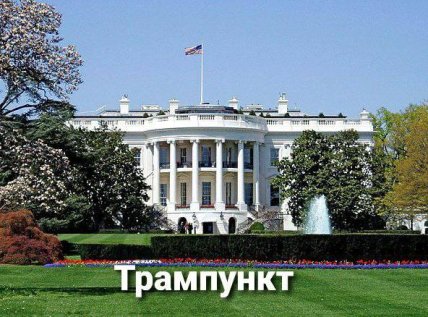 Одним з найдотепніших можна вважати фото Білого дому з написом “Трампункт”, що співзвучно з “Травмпунктом”. Тут автор певно натякав на недоречність заяв Трампа, які характеризують його як людину несповна розуму.