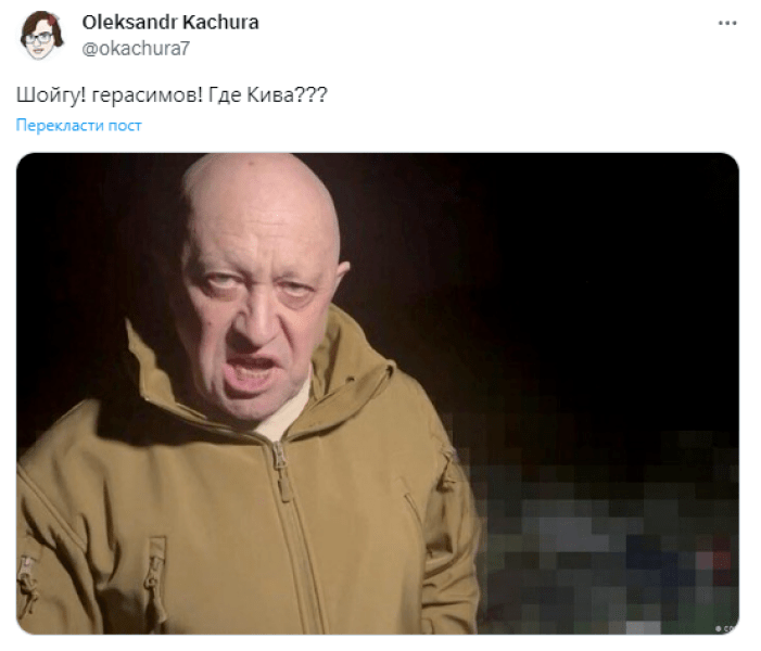 Не забули користувачі соцмереж згадати і Євгена Пригожина з його відомим закликом до Шойгу та Герасимова.