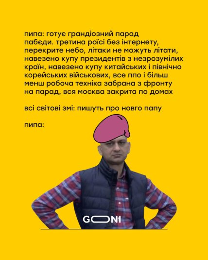 “Телеграф” зібрав найяскравіші з них. Зокрема жартують, що Ватикан відібрав славу Путіна, обравши напередодні нового Папу Римського. Адже увага світу прикована саме до подій у Ватикані, про це значно більше пишуть ЗМІ, ніж про російський парад.