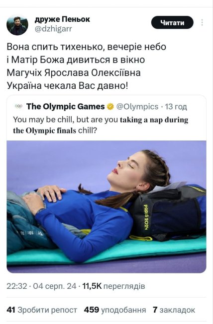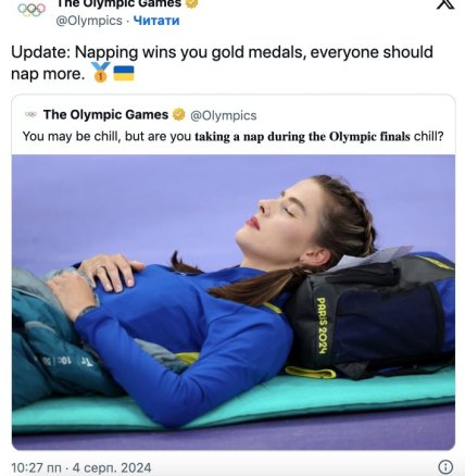 “Апдейт: Дрімота приносить золоті медалі, кожен має спати більше”.