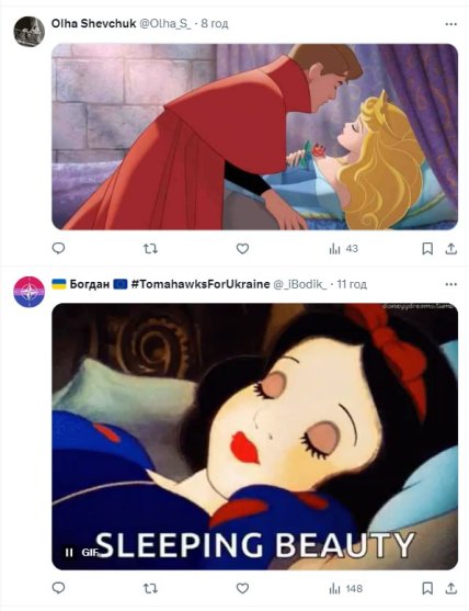 Не оминули тему мемів і українці. Дехто порівнював Магучіх з героїнею мультфільму “Спляча красуня” та героїнею казки “Білосніжка”.