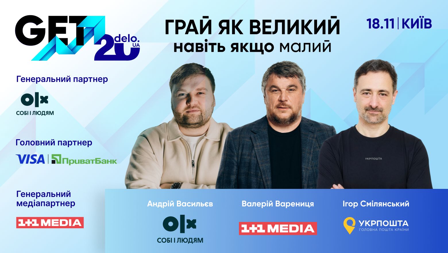 18 листопада 2025 року в Києві відбудеться GET Business Festival — щорічний великий фестиваль для малого та середнього бізнесу. Захід об’єднає понад 90 спікерів із практичними кейсами, 1500+ учасників: підприємців різного рівня бізнесу, інвесторів, топменеджерів і представників держави. Фестиваль проходить уже понад 10 років під егідою ділового медіа Delo.ua, яке цього року в межах заходу святкуватиме 20-річчя.