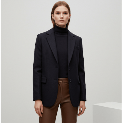 Склади стильний зимовий образ для жінки 35 років, зріст 175 см, стиль — мінімалізм, подія — ділова зустріч. Основні матеріали — вовна, кашемір, екошкіра.