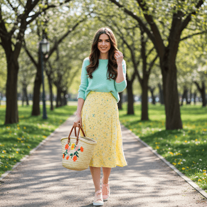 “Створи стильний весняний образ для дівчини 25 років, зріст 170 см, перевага — пастельні тони, подія — прогулянка в парку.