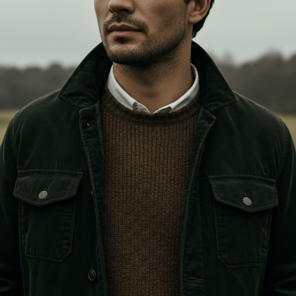 Підбери осінній образ для хлопця 28 років, зріст 180 см, стиль — casual smart, подія — побачення в кав’ярні. Основні кольори — темно-зелений, коричневий і бордо.