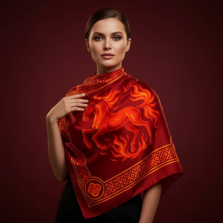 • Універсальність. Хустку можна носити на голові, шиї, плечах, заплітати у волосся або пов’язувати на сумочку. Вона однаково доречна в ділових, повсякденних і вечірніх ансамблях.