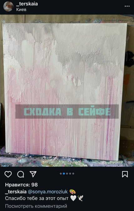 При цьому автори каналу зазначають, що про знайомство зі скандальною родиною свідчить те, що фотографії Терської лайкає Ольга Гринкевич — дочка Ігоря та сестра Романа Гринкевича. Крім того, вона сама показувала, як працювала над картинами разом із Сонею Морозюк — колишньою нареченою Романа Гринкевича.