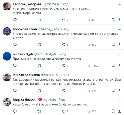 Новий образ путініста Кіркорова викликав жваві обговорення в мережі, більшість користувачів погодилися з тим, що співак знову “зайшов не в ті двері”, адже піджак від Louis Vuitton, підозріло схожий на форму ЗСУ.
