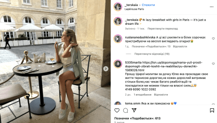 Зауважимо, що такий доволі розкішний образ життя дівчина демонструє протягом усієї повномасштабної війни. Якщо ж передивитися її Insragram взагалі з’являється враження, що вона частіше буває за кордоном, ніж в Україні.