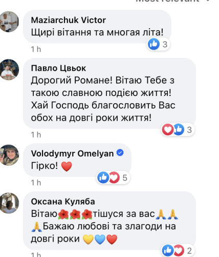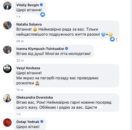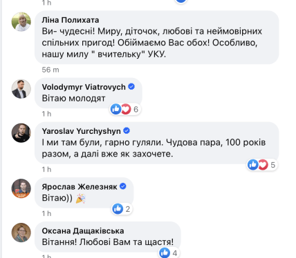 У коментарях під дописом молодят щиро вітають та бажають довгих років шлюбу.