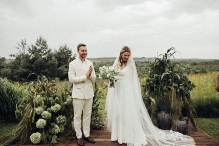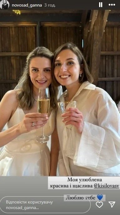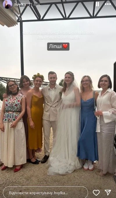 Подружжя також додало фотографію у весільних вбраннях. А фотографіями з весілля поділилась одна з його гостей ексміністерка освіти Ганна Новосад і продакт-менеджерка Оксана Крикун, яка своїх сториз опублікувала декілька кадрів.