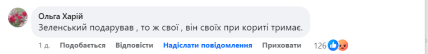 - “Зеленський подарував, то ж свої, він своїх при кориті тримає”.