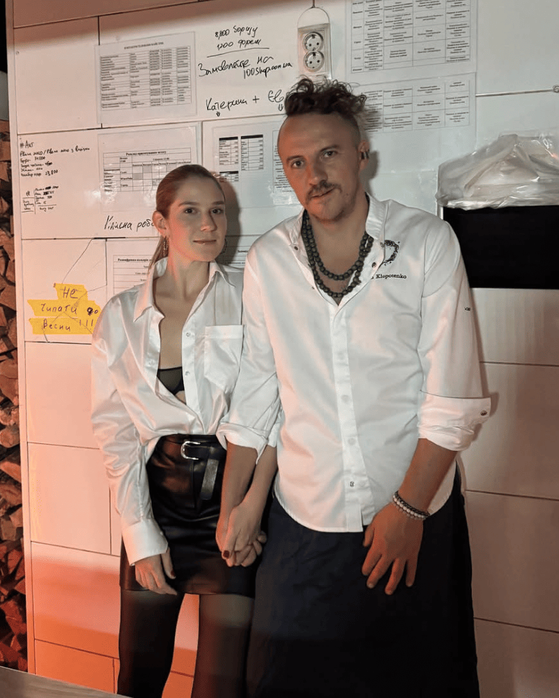 “Катерина. Ми вже три+три+три місяців разом і, мені здається, тепер ви будете бачити нас частіше. Хочете за нас випити — випийте. Хочете поїсти — готуйте або ж їжте українське. Цьом”, — жартівливо підписав фото кулінар.