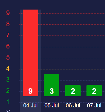 Наразі, 4 липня, тримається геомагнітний шторм 9 балів, який вируватиме одну добу. Потім, протягом наступного дня, 5 липня, та до кінця цього тижня очікується мінімальна сонячна активність 2-3 балів.