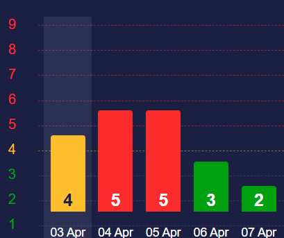 Наразі,3 квітня, тримається геомагнітне коливання 4 балів, якого вже 4 та 5 квітня переросте в магнітну бурю 5 балів.