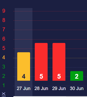 У четвер, 27 червня, має протриматися середня магнітна буря 4 балів, яка вже 28 та 29 червня виросте до високого шторму.