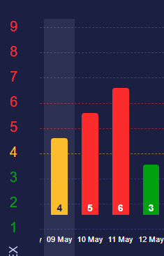 Протягом 9 травня протримається середня магнітна буря яка не перевищить 4 балів. Вже з 10 по 11 травня включно на Землі вируватиме високий шторм, який коливатиметься від 5 до 6 балів потужності.