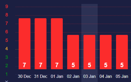 Хоча сильний семибальний шторм закінчився, але на Землі упродовж 3-5 січня продовжить триматись п’ятибальна магнітна буря. Вона виникне внаслідок викиду корональної маси (СМЕ) і потоку сонячного вітру.