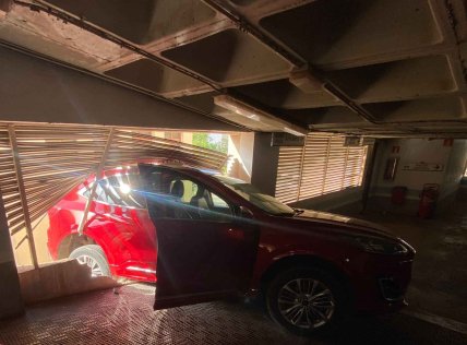 49-річна жінка намагалася припаркувати свій автомобіль на третьому поверсі паркінгу, коли сталася надзвичайна подія. Машина пробила захисні жалюзі на вікні будівлі, і її задня частина опинилася за межами споруди. Два задні колеса автомобіля зависли у повітрі на висоті приблизно 15 метрів.
