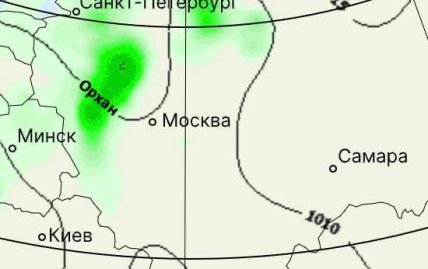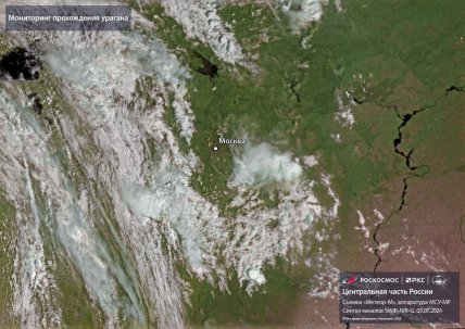 У мережі вже показали супутникові знімки урагану, який бушує в Московській області. Також вже з’являються перші кадри наслідків негоди, зокрема, повалені дерева.