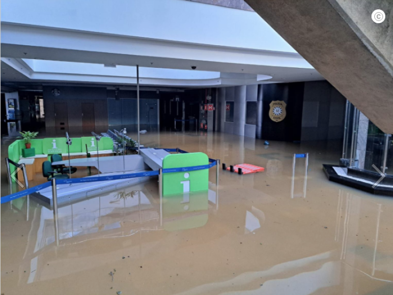 Співробітники міжнародного аеропорту Салгаду Філью тепер оглядають затоплені літаки, ангари, перони на човнах, а сам аеровокзал зачинено щонайменше на місяць.