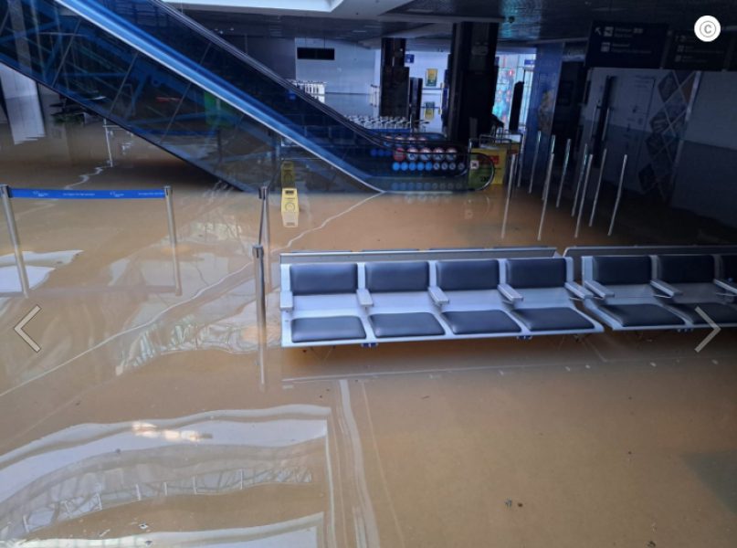 Злітно-посадкові смуги і вся інша інфраструктура аеропорту разом із літаками, які не встигли відлетіти, були накриті водою з озера Гуайба, рівень якого досяг історичної позначки.