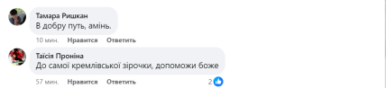 “”В добру путь, амінь”, “До самої кремлівської зірочки, допоможи боже”, “Мацква в болото йде? З болота вийшла в болото й піде”, “А там поряд дамби є?”, “Карма“, — пишуть українці в мережі.