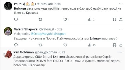 Відео виступи американського політика публікують у мережі. Більшість українців з гумором відреагували на концерт Блінкена, але знайшлися й ті, кому його виступ не сподобався.