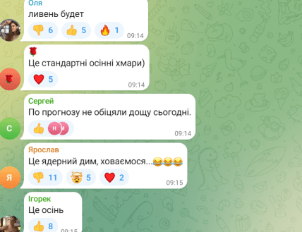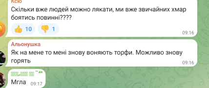 Інші зазначають, що у небо піднявся туман. Він збирається в долині річки Ірпінь за ніч, а вітер із заходу тягне його у бік Києва.
