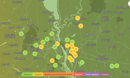 Карта забрудненості повітря у Києві вранці 24 серпня