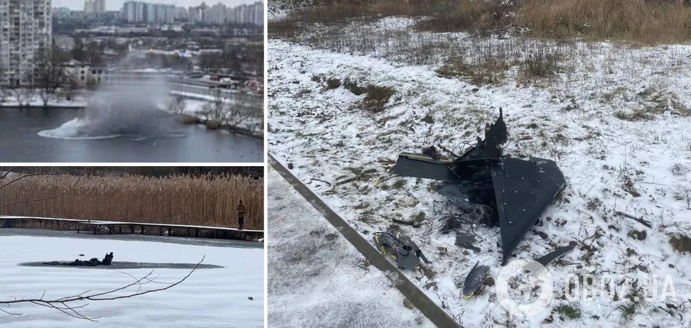 На опублікованих фото та відео можна побачити момент падіння дрона у водойму.