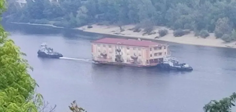 Вдень 5 жовтня у Києві помітили незвичайну картину. По Дніпру у межах столиці пливла багатоповерхівка.