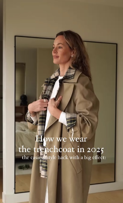 Популярна фешн-блогерка Anouk Yve показала, як можна стилізувати тренч. Для цього вона одягла білі джинси та лонгслів. Зверху вона накинула картату сорочку в бежево-коричневій гамі, яка зараз на піку популярності.