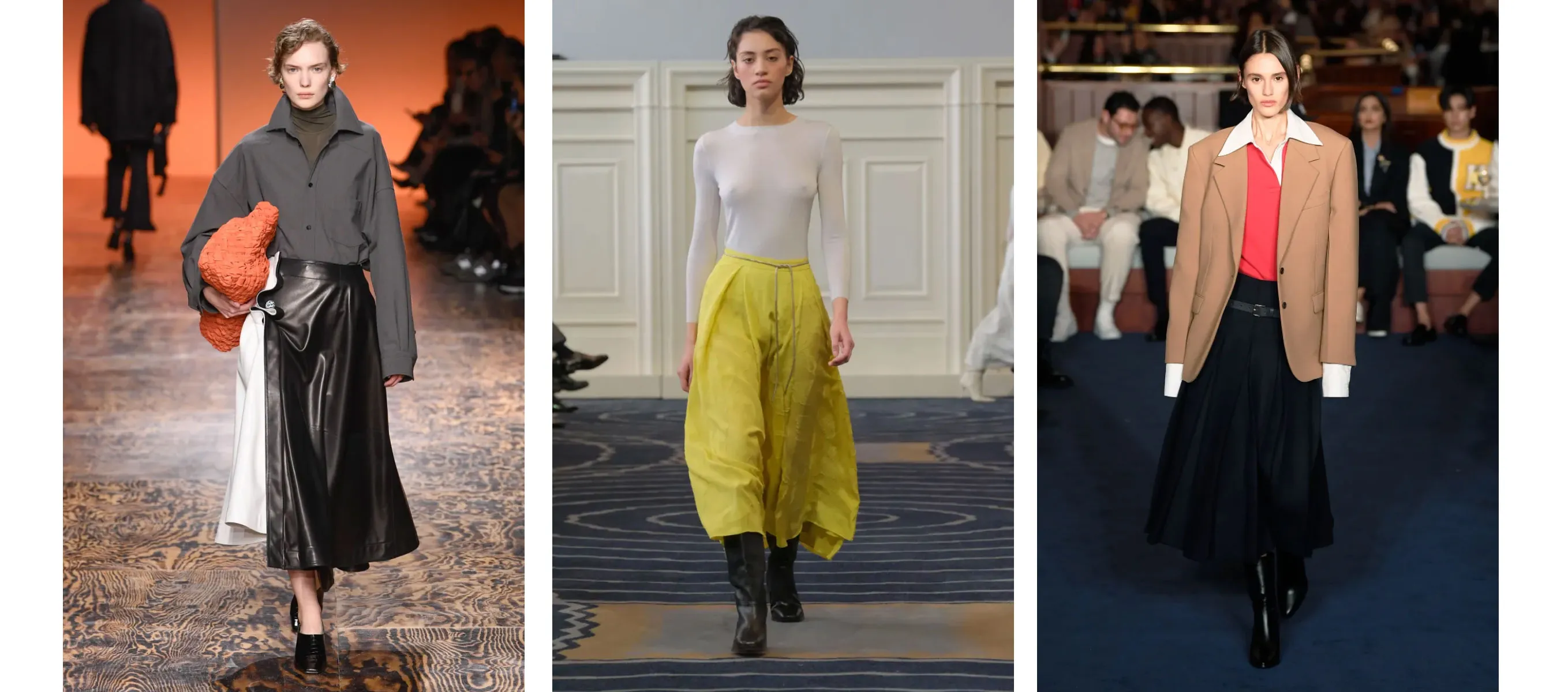 Спідниці-міді та максі продовжують займати провідні позиції серед фаворитів сезону, адже вони легко комбінуються з високими чоботами, об’ємними светрами та елегантними пальтами. Втім, мініспідниці залишаються актуальними для сміливих і стильних образів.