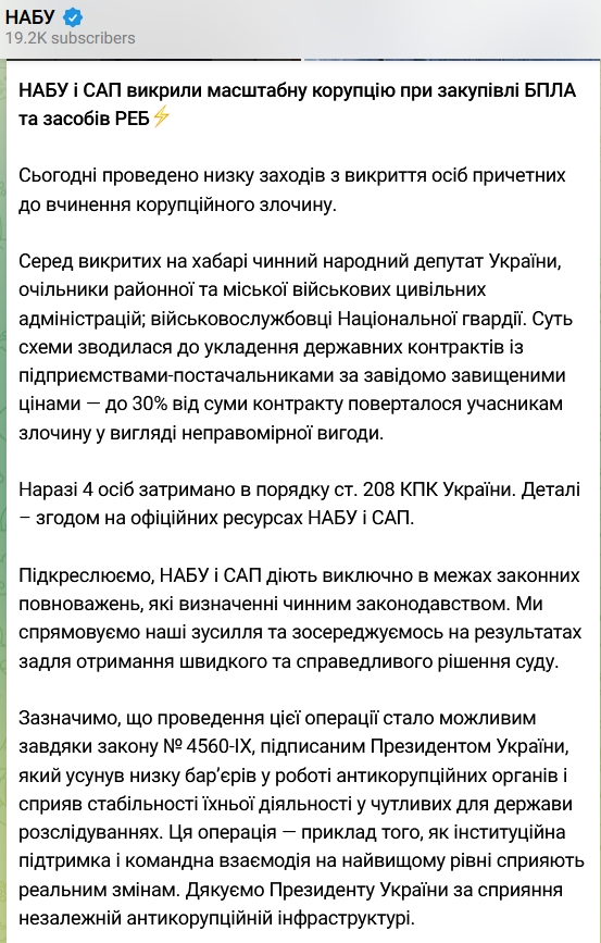 “Вдячний антикорупційним органам за роботу”, – написав Зеленський.